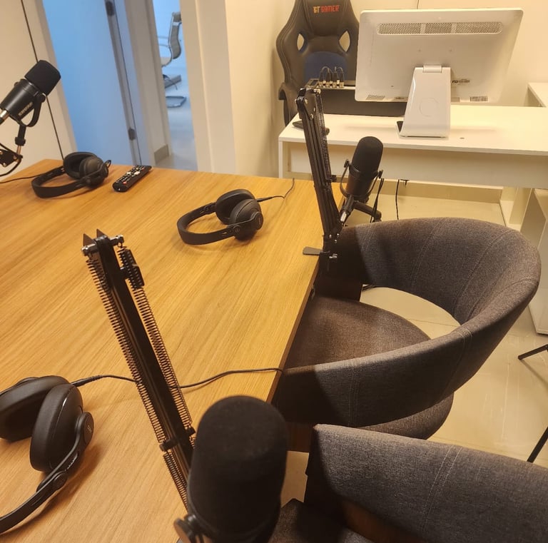 Com estúdio moderno e completo, garantimos isolamento acústico e equipamentos de ponta. Agende agora e dê vida ao seu conteúdo com nossa equipe especializada em produção audiovisual.